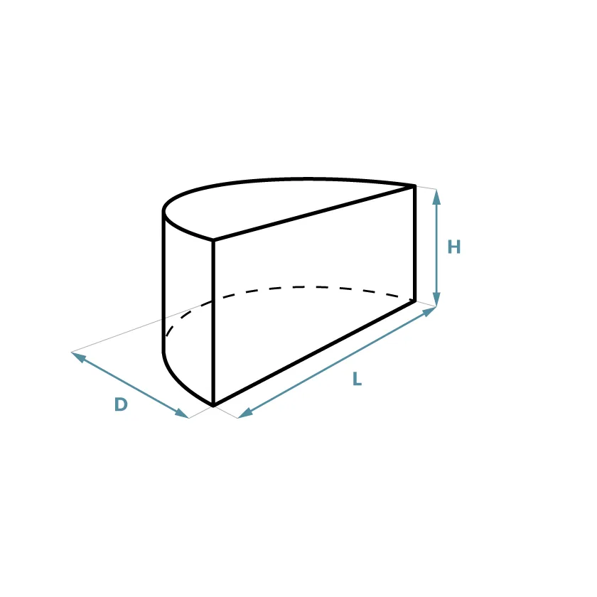 La forme SUN possède une longueur, une profondeur et une hauteur définies. Elle permet un ajustement flexible aux objets semi-circulaires et garantit des dimensions parfaitement adaptées.