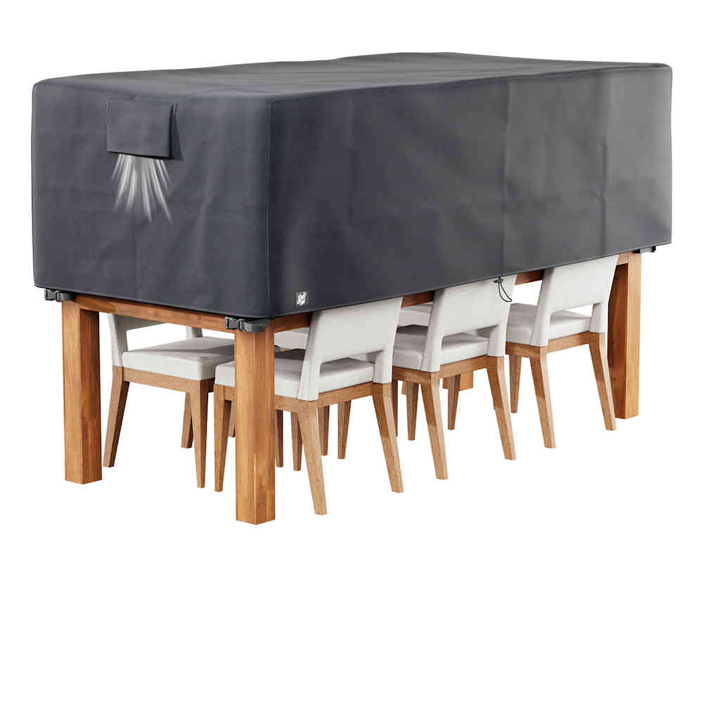 Gefertigt aus hochwertigem Oxford 600D Polyester überzeugt die Abdeckung durch außergewöhnliche Robustheit, 100 % Wasserdichtigkeit, versiegelte Nähte sowie hohe UV-Beständigkeit. So bleiben Ihre Möbel das ganze Jahr über geschützt – bei Regen, Schnee, Wind oder starker Sonneneinstrahlung.