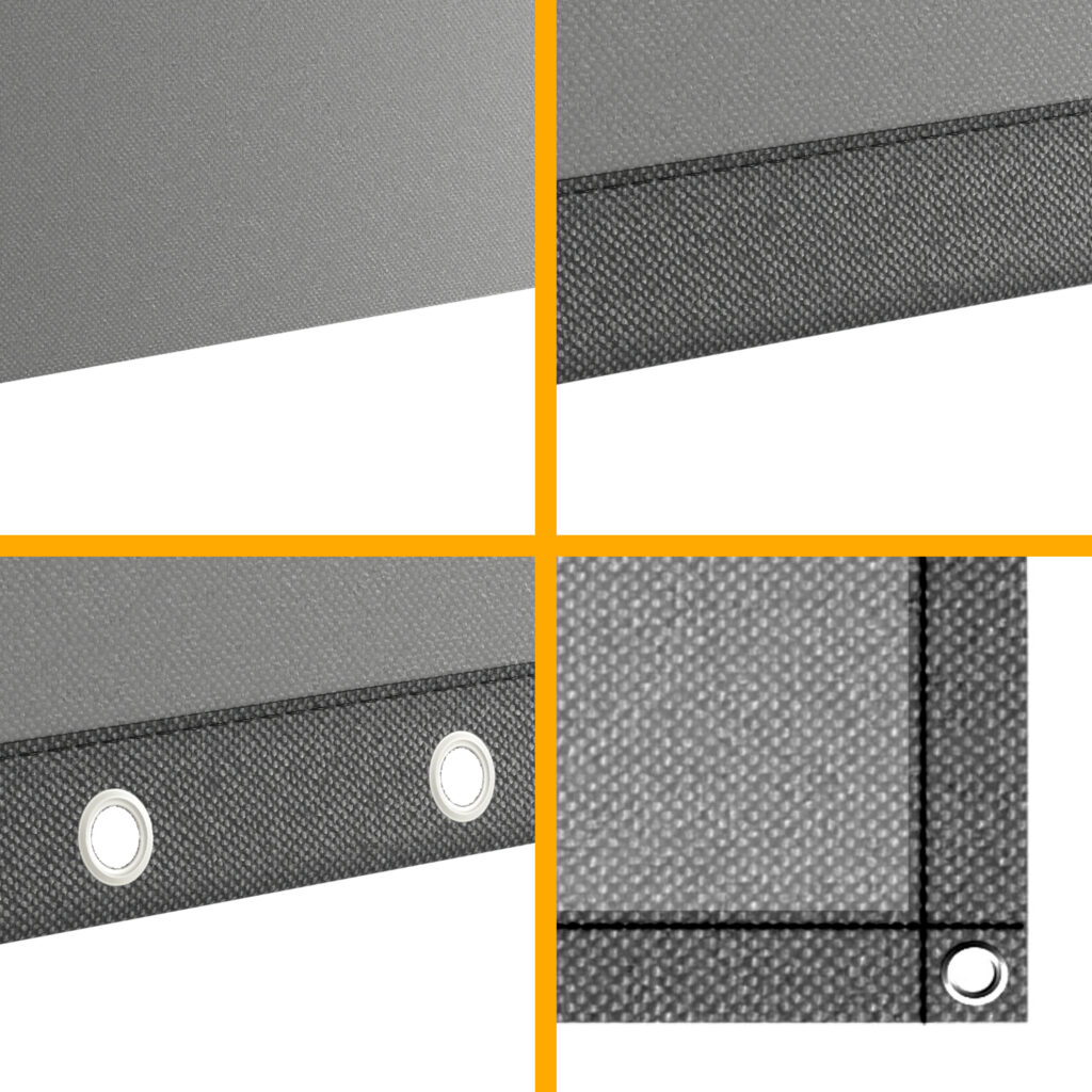 Dank der rostfreien Edelstahlösen lässt sich die Plane stabil und sicher mit Seilen, Haken oder Kabelbindern befestigen.